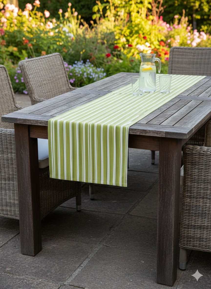 Runner da tavola idrorepellente anti stiro tessuto fiammato filato caratterizzato da un trattamento che rende il prodotto idrorepellente mantenendo inalterate le caratteristiche tessili tattili e la sua morbidezza